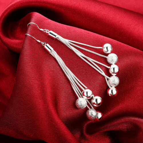 New 925 Sterling Silver Filled Women's Ball Beads Long Drop Dangle Hook Earrings