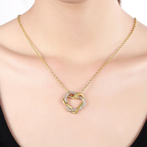 New 18K Gold Filled Women's Love Heart Pendant Necklace With Simulated Diamonds