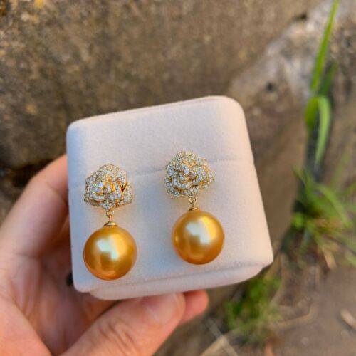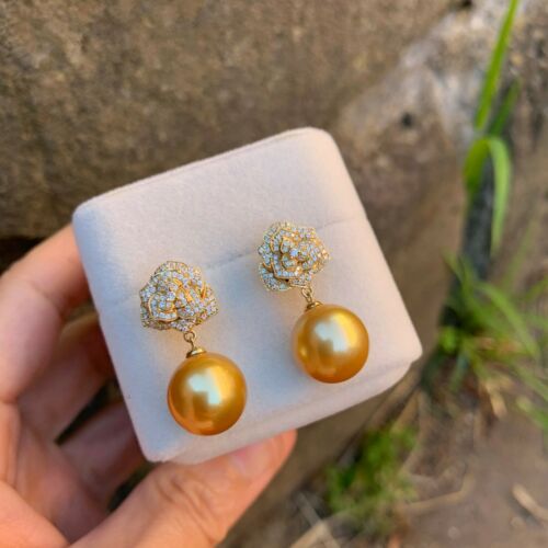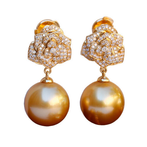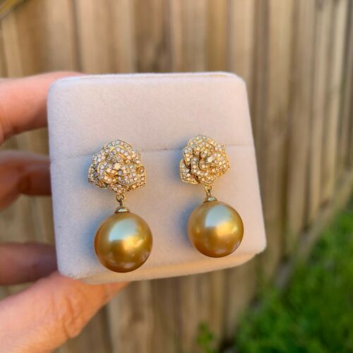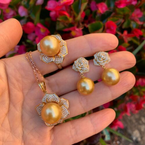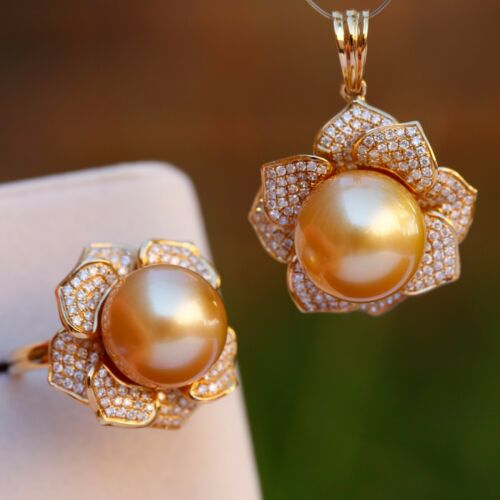 Top Quality Australia Seawater Gold Pearl diamond pendant Earring Ring 18K gold