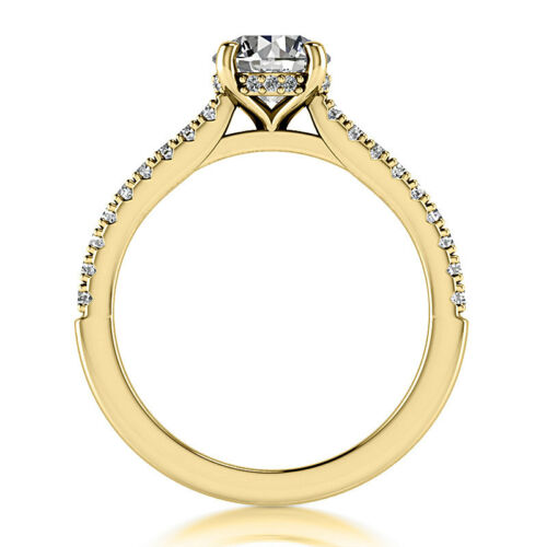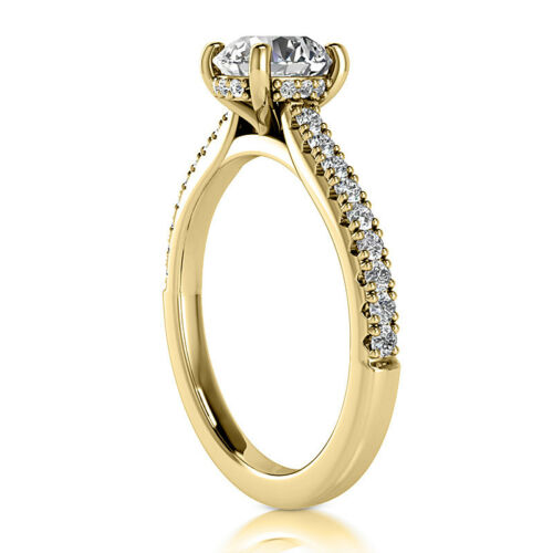 Pave Solitaire .75 Carat SI/F Round Diamond Engagement Ring Yellow Gold Enhanced