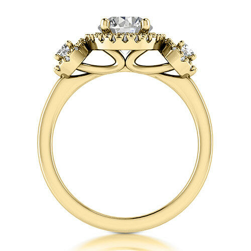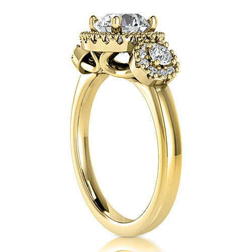 Certified Natural Halo 1.5 Carat SI1/H Round Diamond Ring Yellow Gold Enhanced