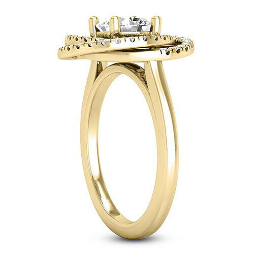 Halo Pave 1.26 Carat VS2/E Round Diamond Engagement Ring Yellow Gold Enhanced