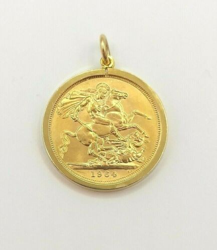 9CT GOLD PENDANT MOUNT & FULL SOVEREIGN ' 1964 ' (1)