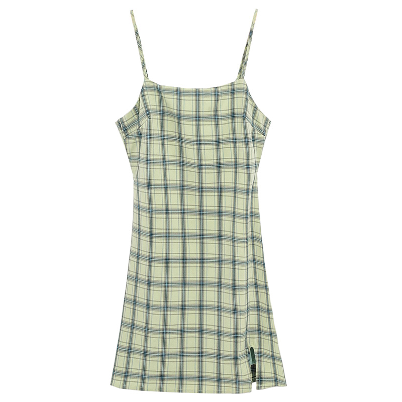 Fabric: Other Pattern: Plaid Style: Commuter Color Classification: Green Plaid Combination Form: Single Component Content: 51% -70% Year Season: Summer 2020 Sleeve Length: Sleeveless Skirt Length: Skirt Style: Suspenders Profile: A
