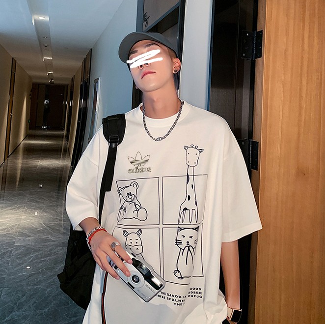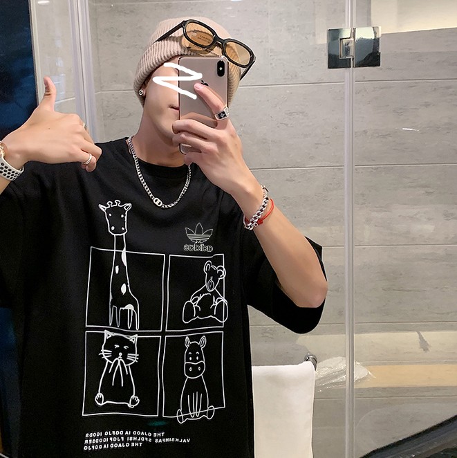 adidas adidas clover summer men and women couple cartoon printing casual round neck short sleeve t-shirt
