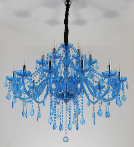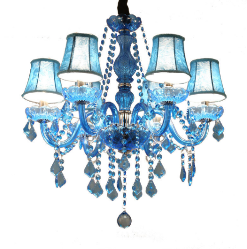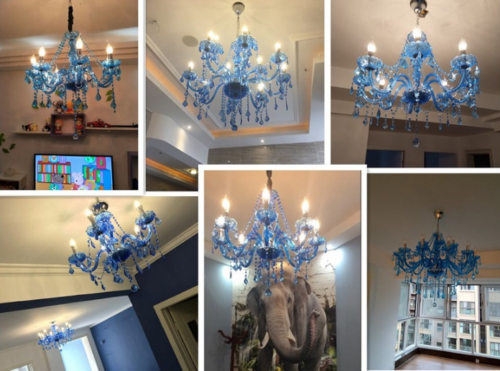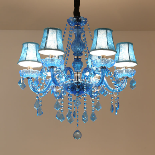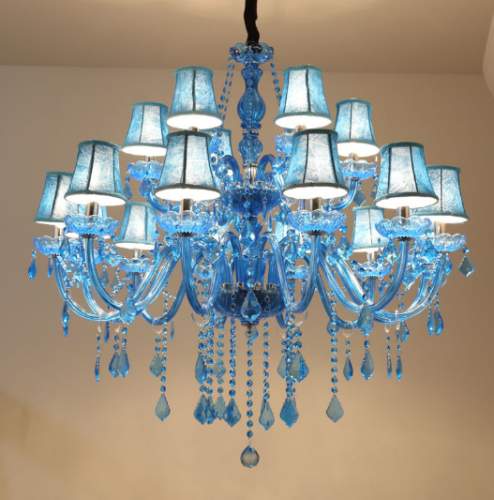 European Crystal Candle Chandelier Luxury Blue Lampshade Light Fixture Home Deco