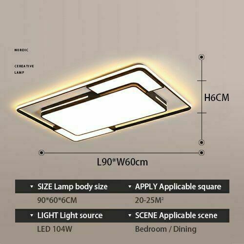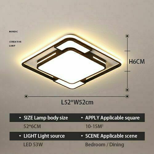 Led Black Square Ceiling Lamp DImmable Bedroom Living Dining Room Chandelier