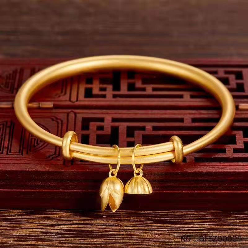 Ancient gold lotus flower lotus pod push pull bracelet pure gold 9999 genuine pure gold simple fashion bracelet
