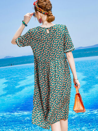 Silk mulberry silk dress summer loose temperament big-name short-sleeved mother skirt waist high-end 2022 new