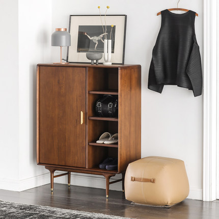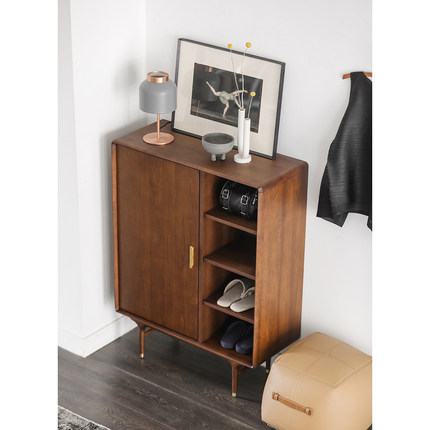 Japanese medieval industrial style import//E10 solid wood shoe cabinet/walnut color #