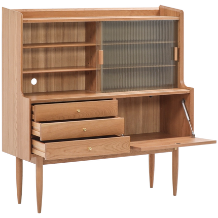 GUAN glass solid wood tea sideboard Japanese medieval vintage cherry wood oak display K