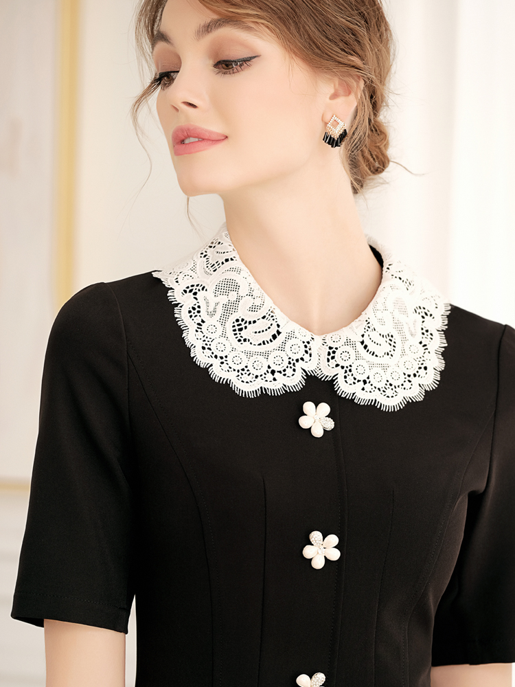 Intellectual and elegant temperament black Peter Pan doll collar dress 2022 new summer ol commuter workplace women's clothing