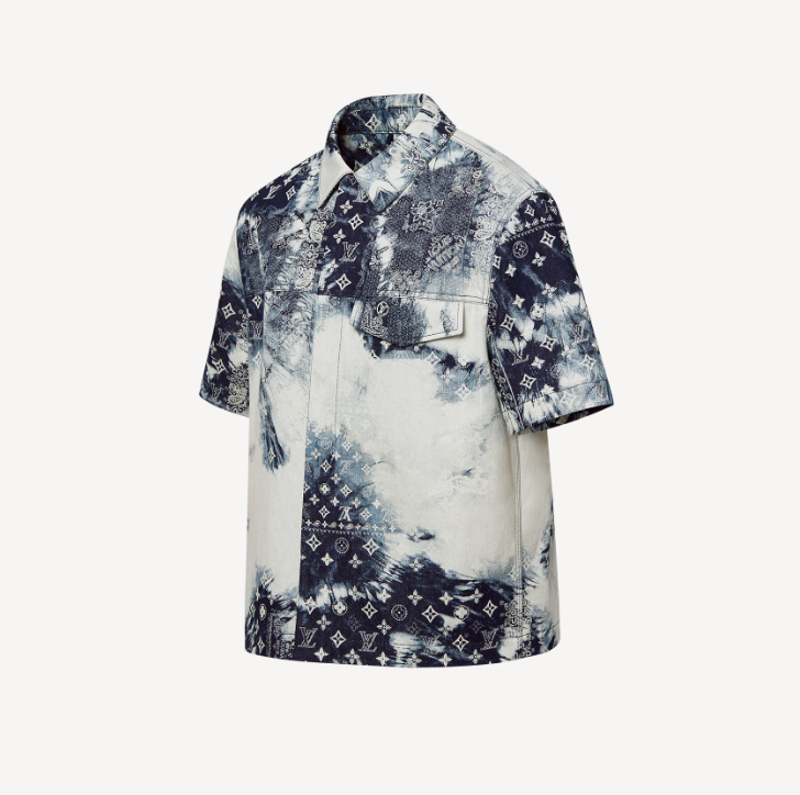 MONOGRAM silk scarf printed denim short sleeve shirt