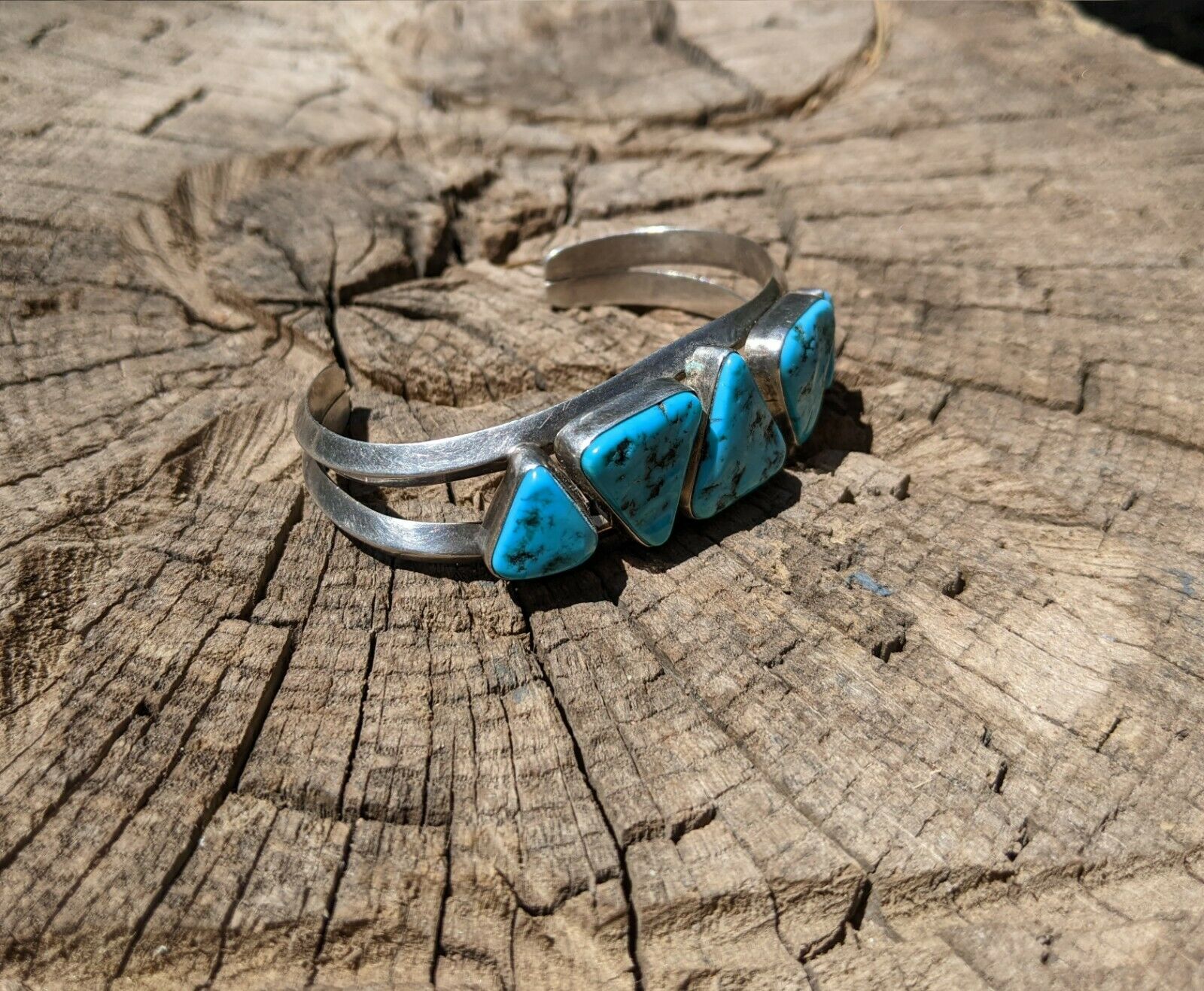 Vintage Navajo Cuff Turquoise Stone Bracelet Jewelry Signeg N. Bia Sz 7 IN
