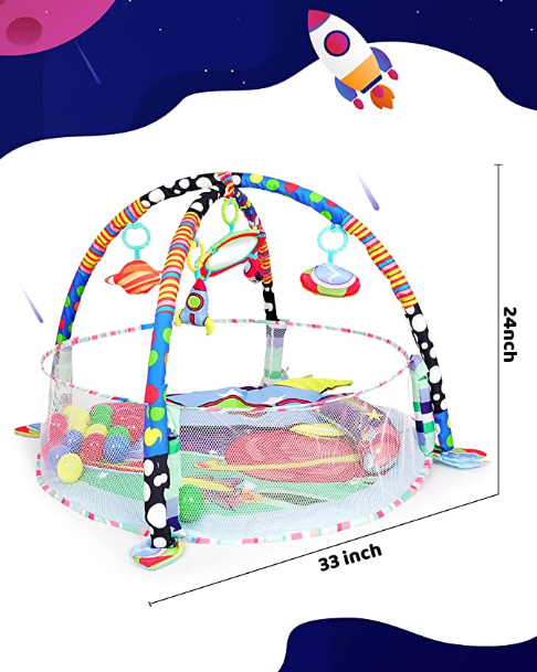 • ?‍?‍?‍?NEWBORNS GROW WITH FUN PLAY GYM : Our 33 inch activity gym mat let provide plenty of space for babies to have happy tummy activities and play, helping babies grow from newborns to active toddlers, more fun and new challenges for your little ones.