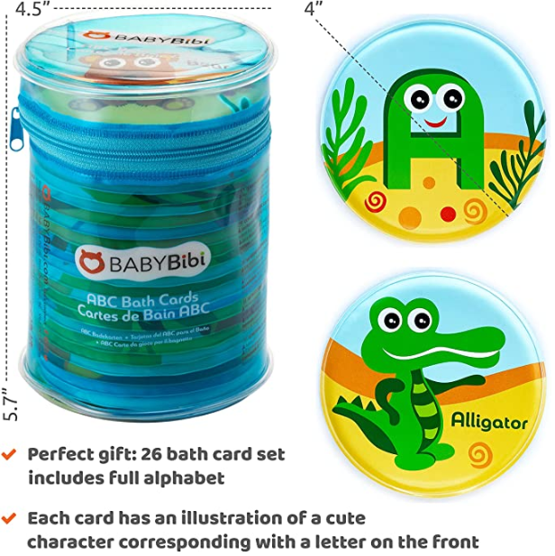 • PRESCHOOL LEARNING - Choose to learn english alphabet, animal names or both while playing in the bath with these alphabet flash cards! Each card showcases a letter with a corresponding animal character on the back. Set included 26 round bath cards.