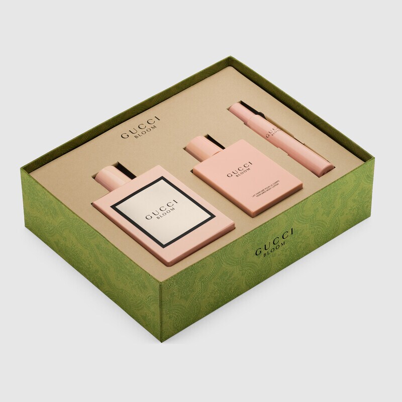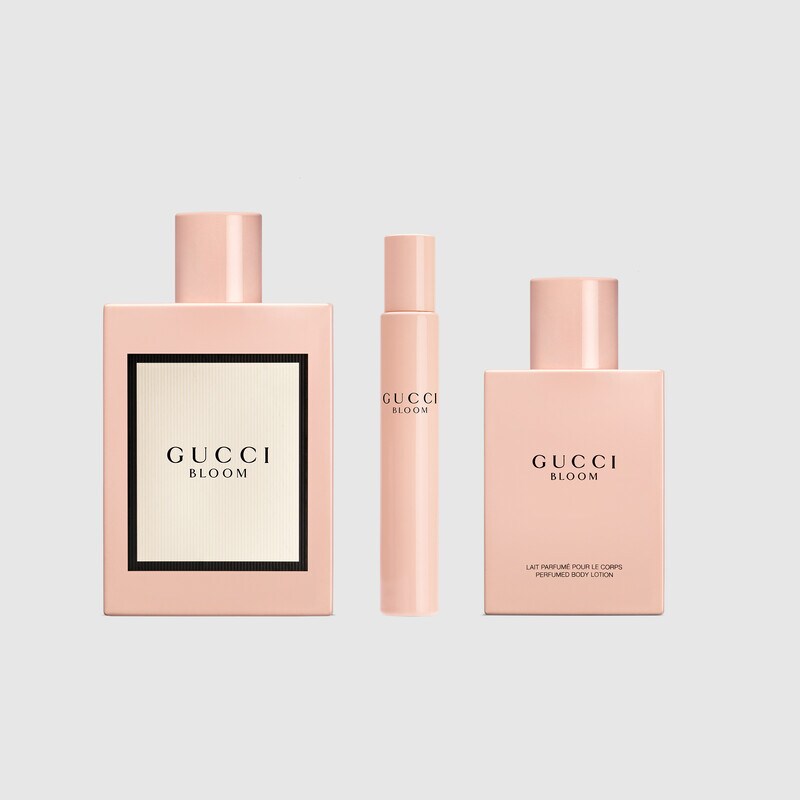 All three pieces are carefully placed in porcelain-like lacquer bottles, which blend with Gucci decal labels to create a delicate atmosphere.