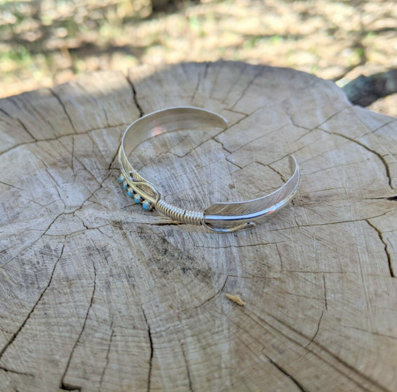 Navajo Kingman Turquoise Bracelet Leaf Sterling Silver cuff Jewelry Sz 6.5 in
