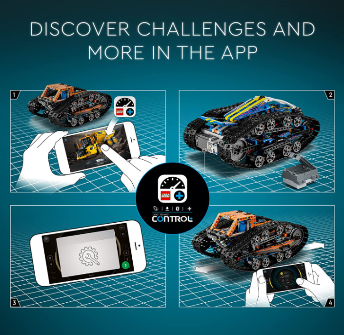 • 2-in-1 fun – Build the first flip vehicle in LEGO Technic history with this LEGO Technic App-Controlled Transformation Vehicle (42140) set, featuring a tracked racer and tracked exploration vehicle
