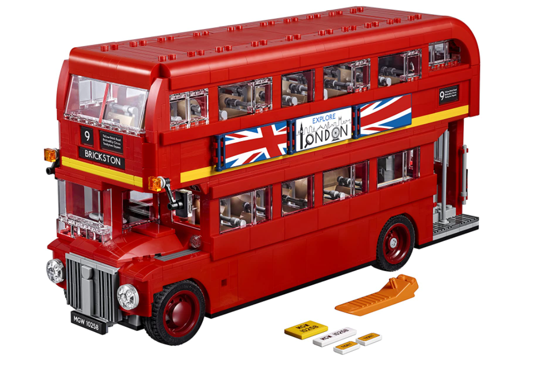 • The London bus comes with an array of brick-built details, including large windows, bright red curved bodywork, panoramic windshield, specially made standard-tread tires and a destination sign