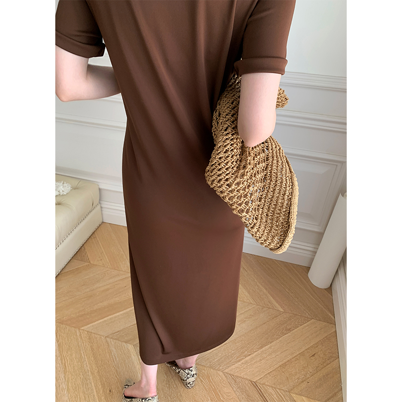 2022 mona original summer lace irregular comfortable lazy line long skirt knitted slit dress women