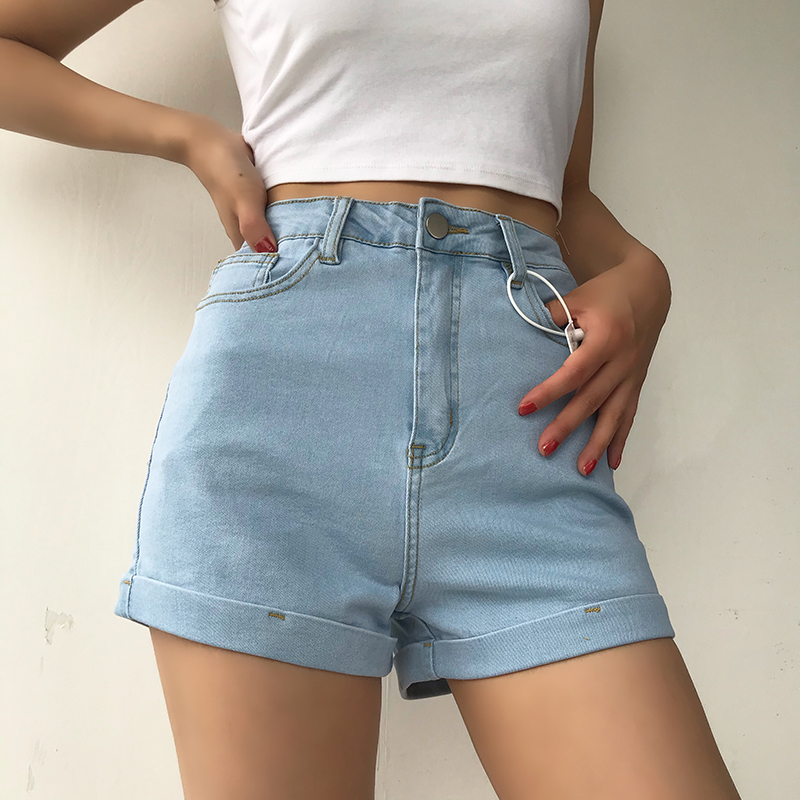 European and American new women's hip hip versatile roll elastic high Fanny butt tight jean shorts women's hot pants