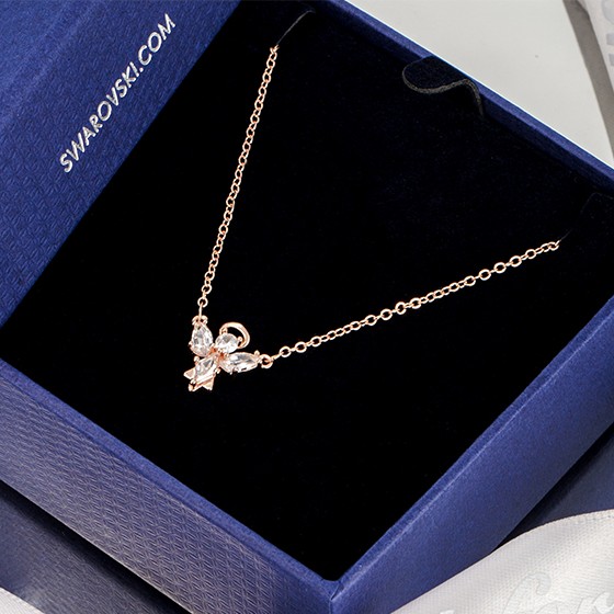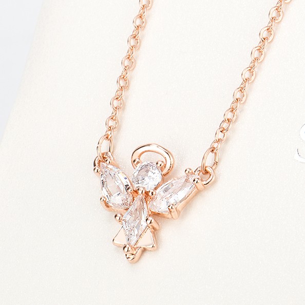 Swarovski Crystal Angel Necklace 925 Sterling Silver Jewelry Rose Gold Pendant Women's Valentine's Day Gift