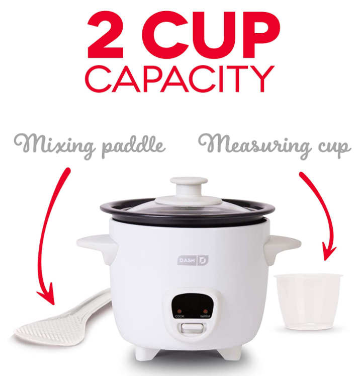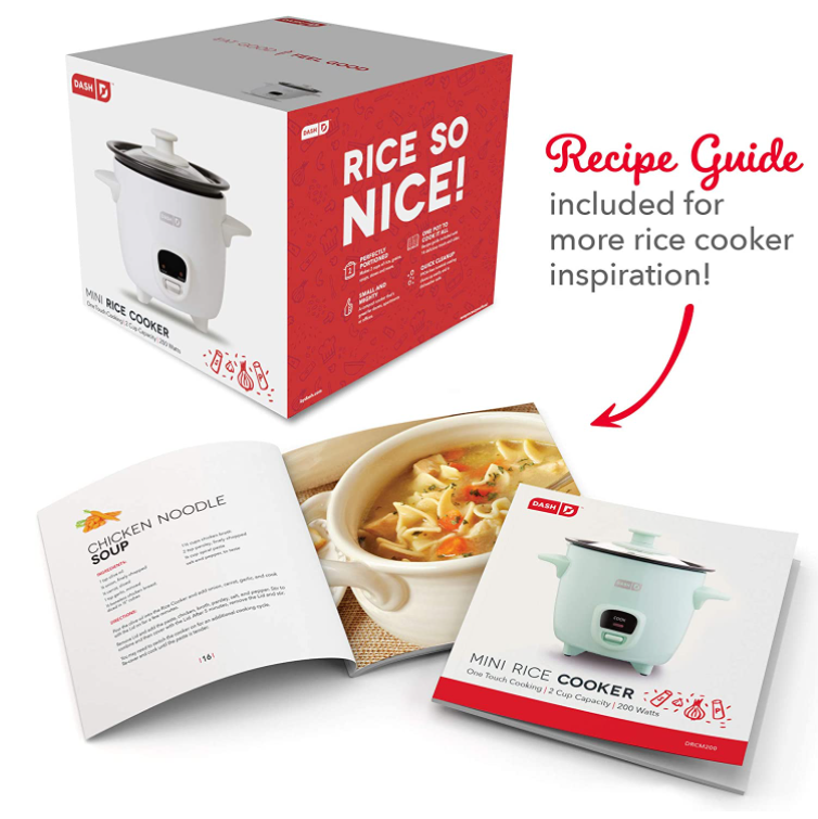 Dash DRCM200GBWH04 Mini Rice Cooker with Detachable Nonstick, Keep Warm and Recipe Guide, 2 Cups, For Soups, Stews, Grains and Oats, White
