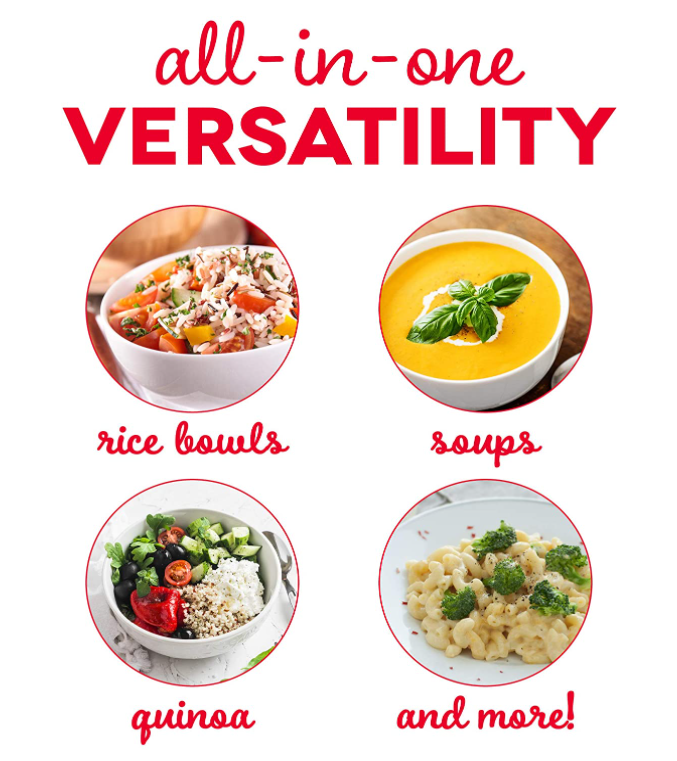 • Not just rice: oatmeal, stews, soups, quinoa, rice and pasta 2-cup capacity for more portion control, or on its own, quick, and easy for breakfast, lunch, dinner, snack or side.