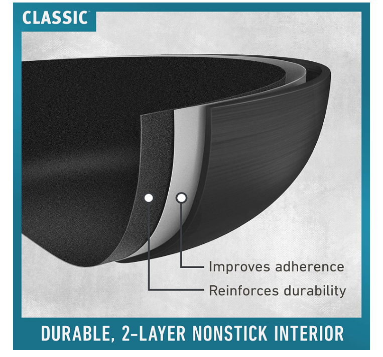 • Nonstick cookware is constructed from hard-anodized aluminum and features convenient measuring marks, pour spouts, tempered glass lids with integrated strainers