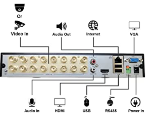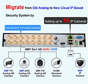• 16 Channel HD DVR/NVR w/ 2TB HDD. Combine a total of 10 analog or IP cameras; supports 16 analog + 2 IP cameras, 15 analog + 3 IP cameras...or up to 18 IP cameras. Triplex: Live/Playback, Recording, Web. Standard H.265/H.264 video compression, low bit rate and better image quality. Supports 2 SATA HDDs (up to 8TB storage capacity per hard drive). Super strong passwords and anti-hacking protocols improve privacy and security. Real-time protection of snapshots and email notifications.