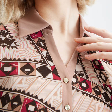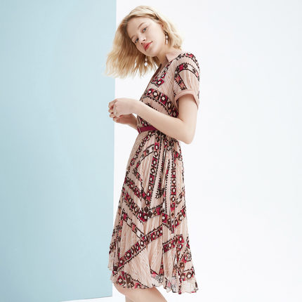summer new European and American style geometric waist shirt dress women's short-sleeved mid-length skirt