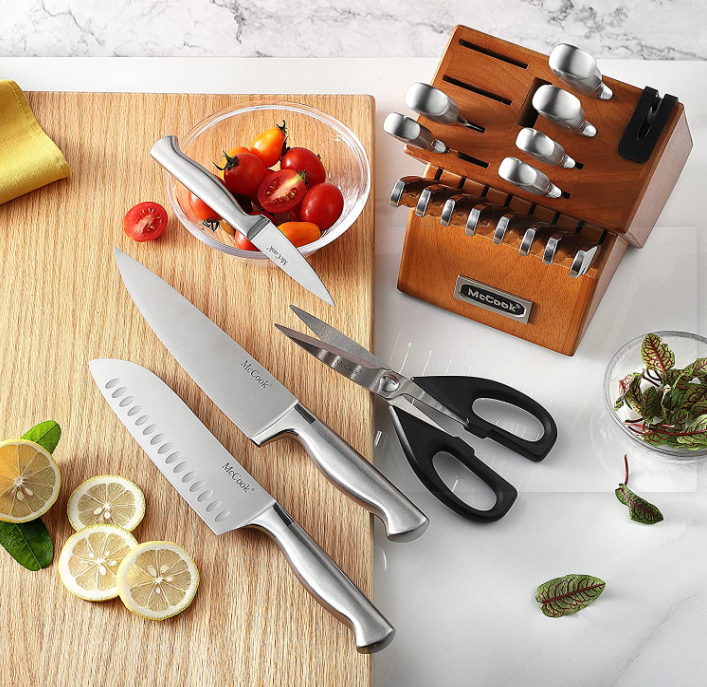 McCook MC69W Kitchen Knife Sets,20 Pieces German Stainless Steel Knives Block Set with Built-in Sharpener