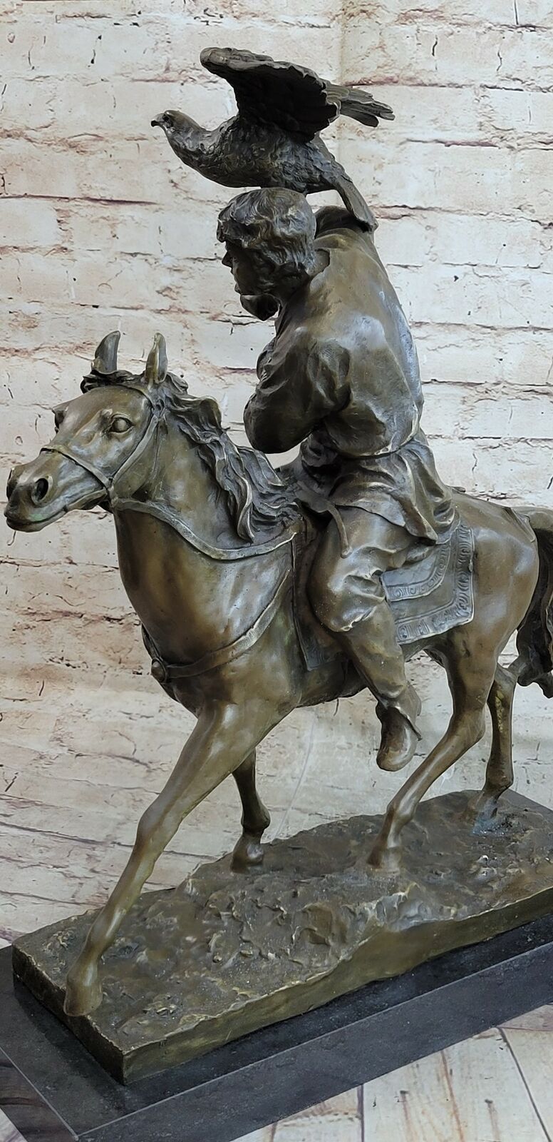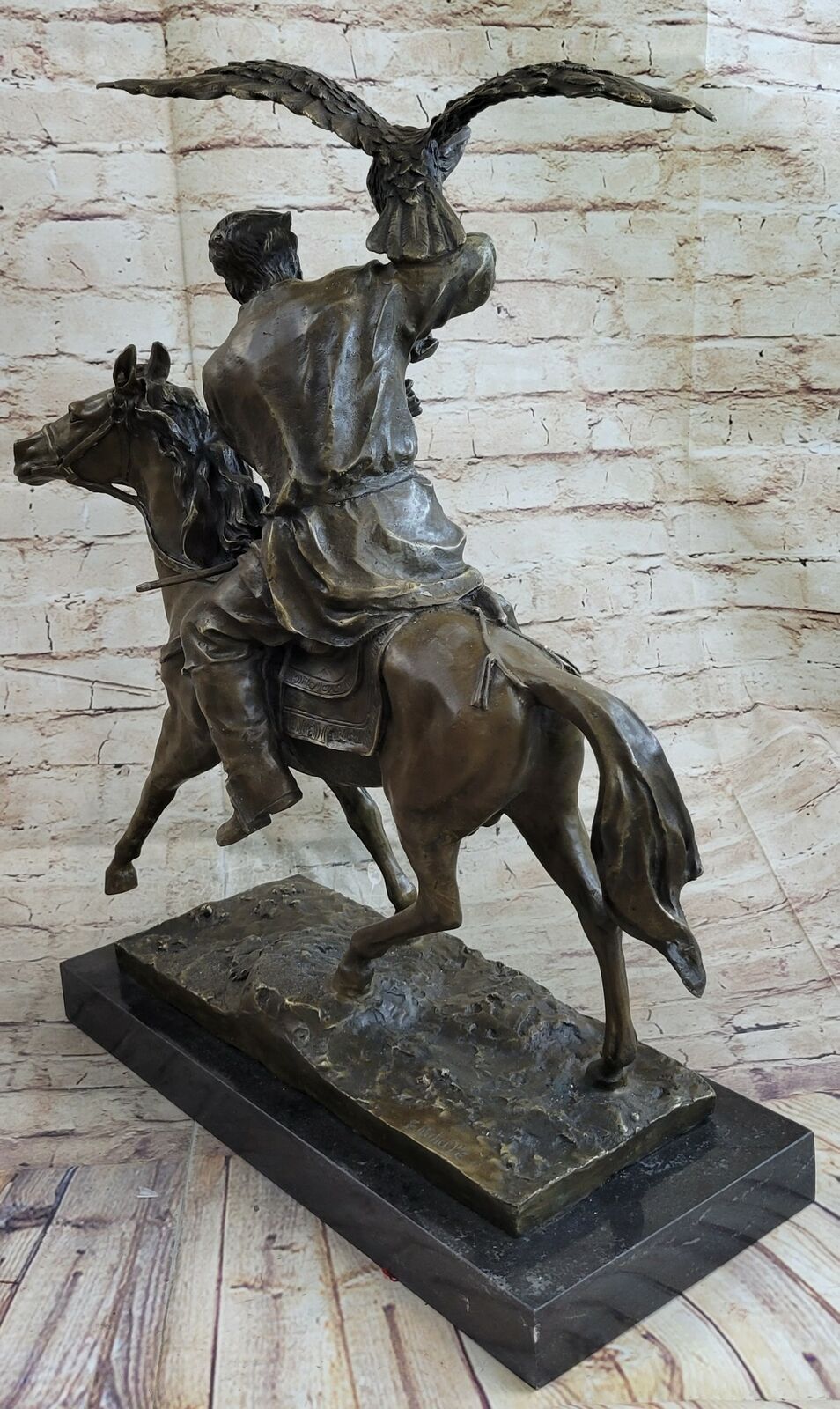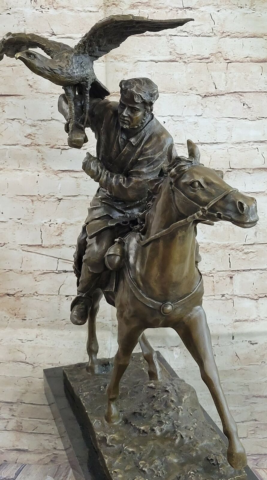 21.5" Western pure Bronze Marble art ride horse Man hold Falcon eagle Sculpture