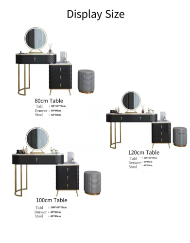 Luxury Modern Pine Dressing Make up Table With LED Light Mirror Drawer and Chair