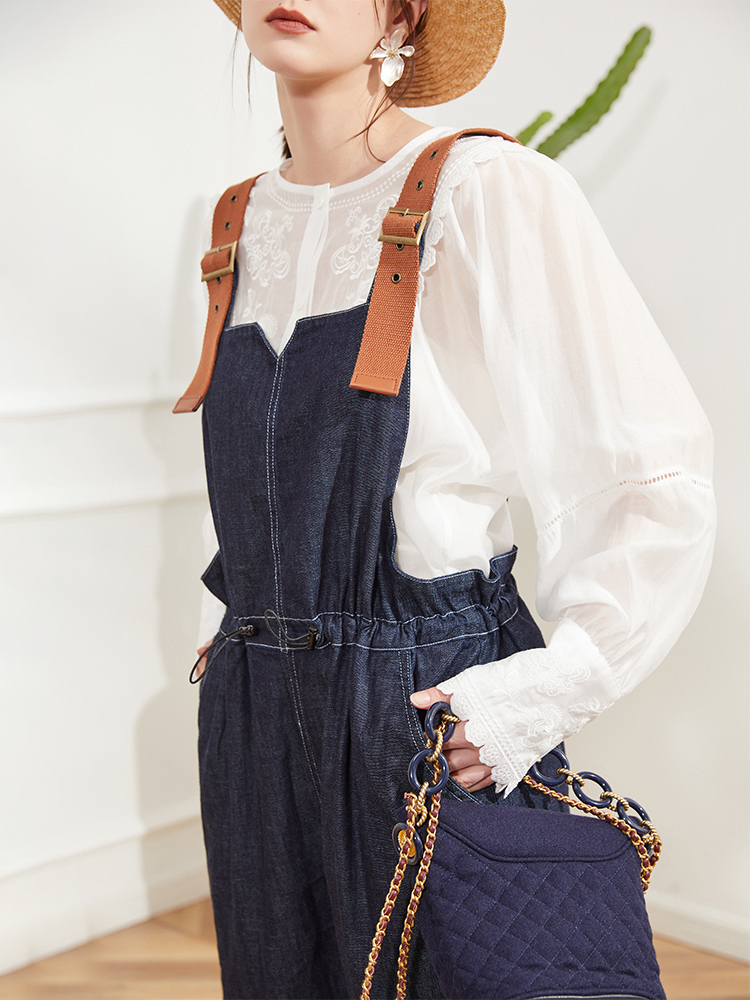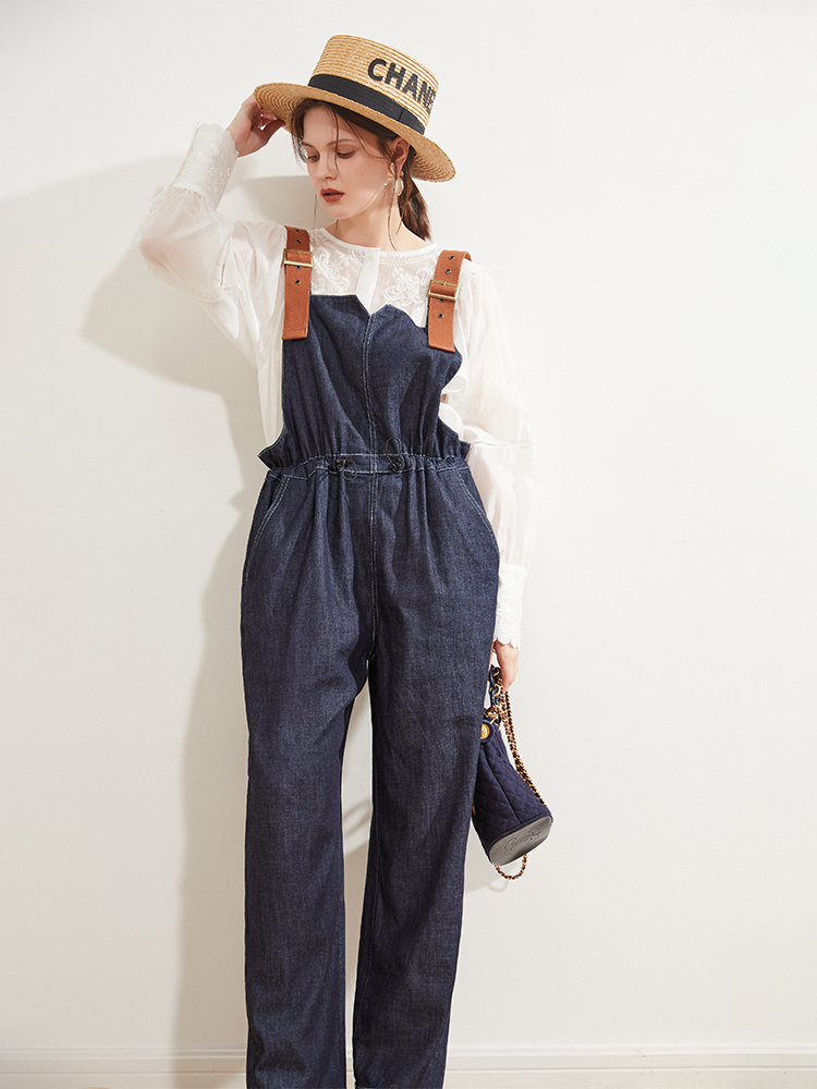 Oz country lazy feeling fashionable overalls women's 22 spring and summer retro blue thin denim straight casual all-match trousers
