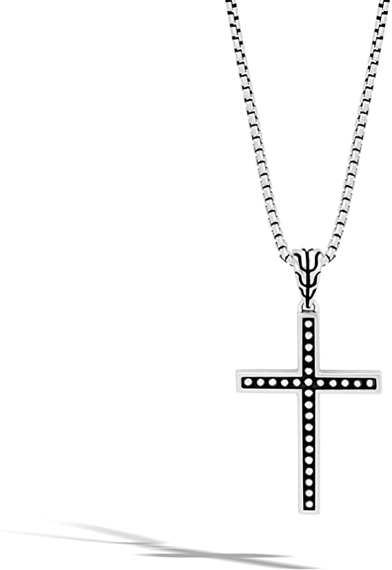 John Hardy Men's Classic Chain Silver Jawan Cross Pendant- on 1.6mm Box Chain Necklace, Size 20