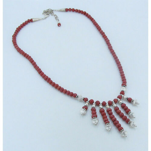 925 Sterling Silver Faded Red Coral Nugget Necklace Dangles