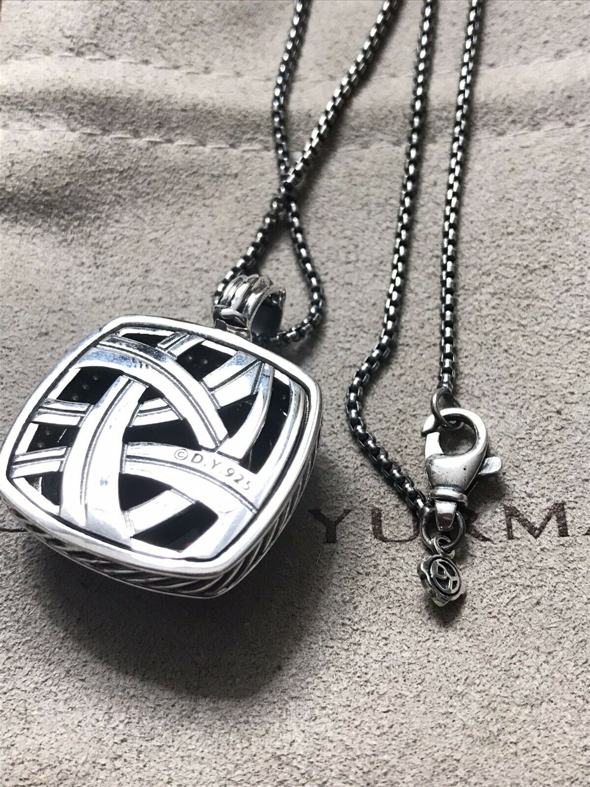 David Yurman Silver 925 Albion 20mm Garnet & Diamond Necklace 16”