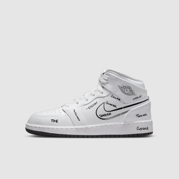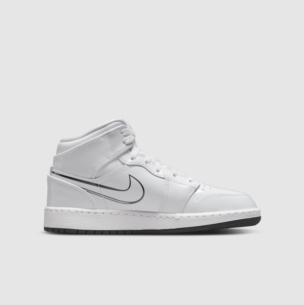 The Air Jordan 1 Mid SS (GS) Big Kid's sneaker has a school-style look that you can't put it down. Crafted in patent leather, it gives you the freedom to be creative on the upper to design your own look.