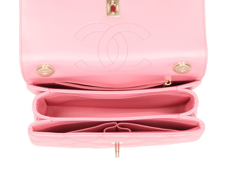 Pink Quilted Lambskin Small Trendy CC Top Handle Flap Bag Gold Hardware, 2020