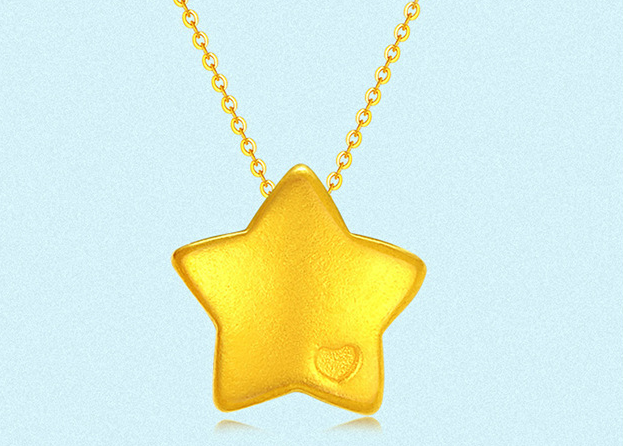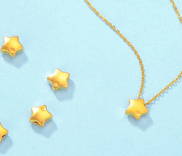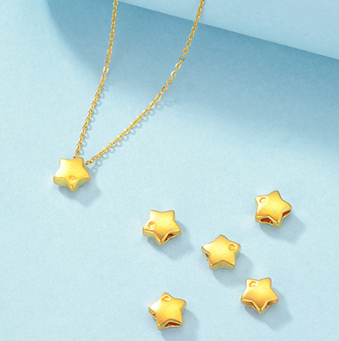 Gold pendant necklace 3d hard gold five-pointed star gold 999 pendant small transfer bead necklace