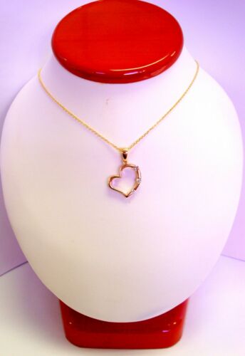 Brand New 14K Yellow Gold 0.22CT Diamond Heart Pendant Necklace Chain 16''