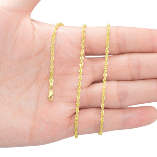 10k gold lamp 1.5mm-4mm diamond cut imitation rope chain pendant necklace 14"-30 "