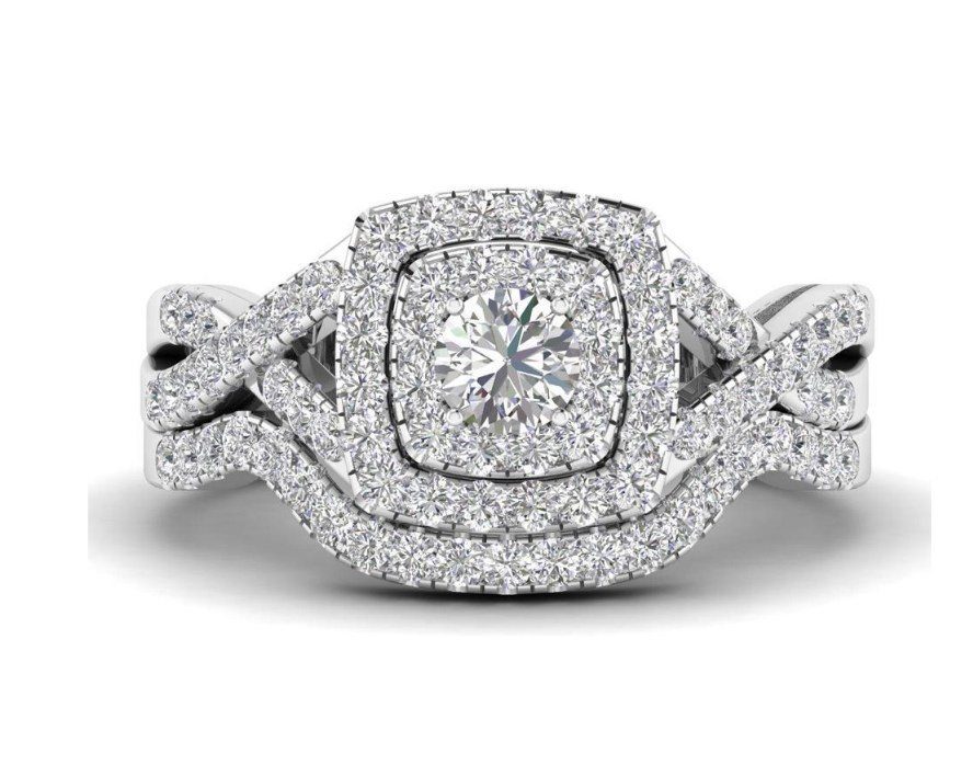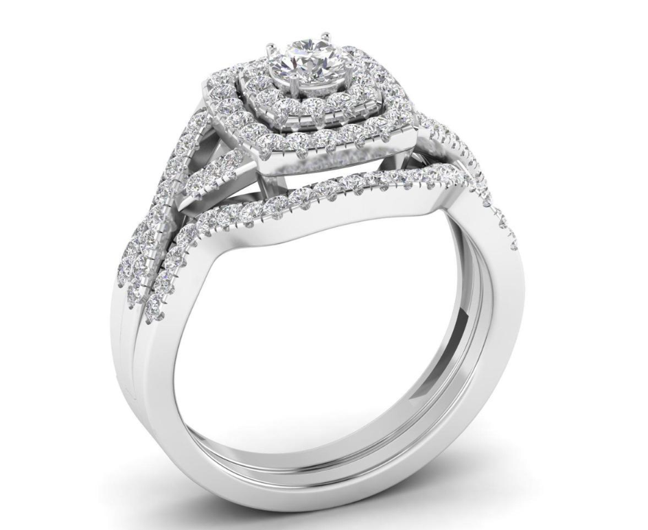 • 0.80ct Natural Diamonds Bridal Ring Set Halo Engagement Ring 14kt White Gold HI