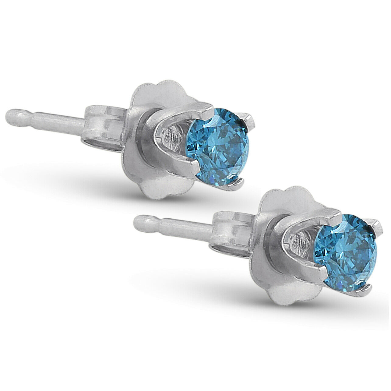 1/3ct Treated Blue Diamond Studs 14 Karat White Gold