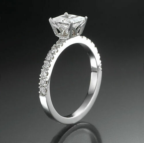 1 Carat D VS2 Affordable Diamond Engagement Ring Princess Cut 14K White Gold