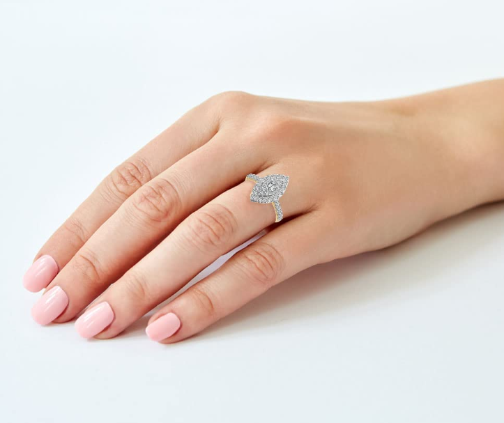 1.00 carat conflict-free diamond olive pointed halo cluster single diamond inlaid with pavé diamond ring