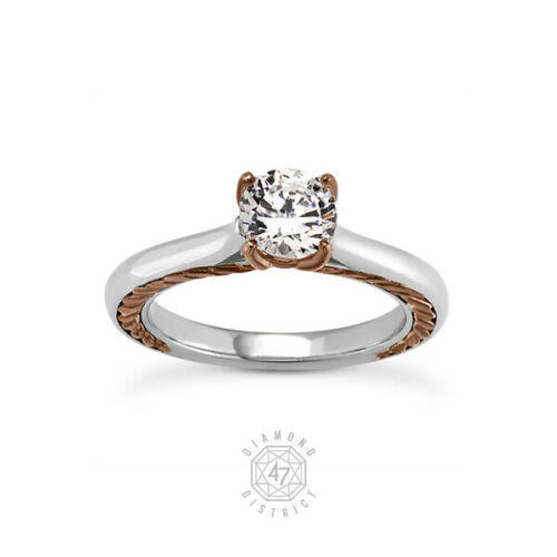 0.73ct G VS2 Round Cut Natural Certified Diamond 18k Gold Engagement Ring Set