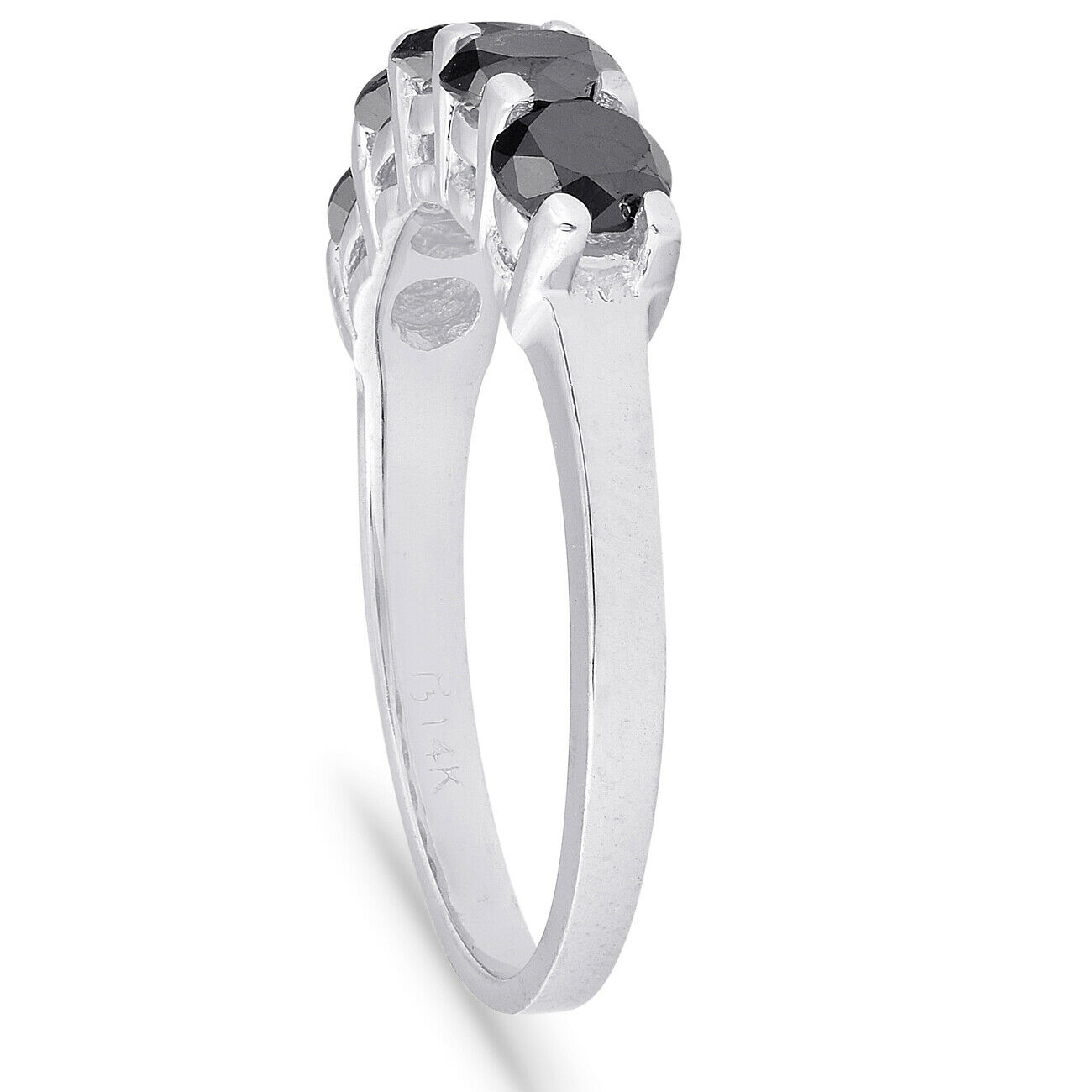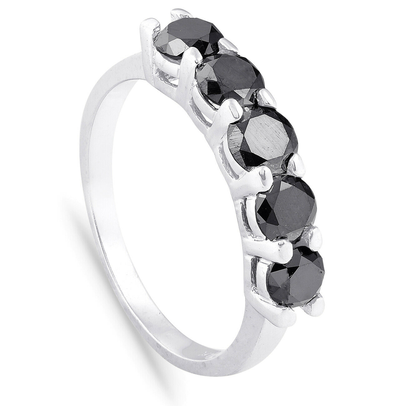 Five stone black diamond wedding anniversary ring band 14k white